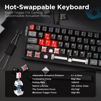 Rapid Trigger 68-Key Hall Effect Wired Gaming Keyboard with RGB Backlight
